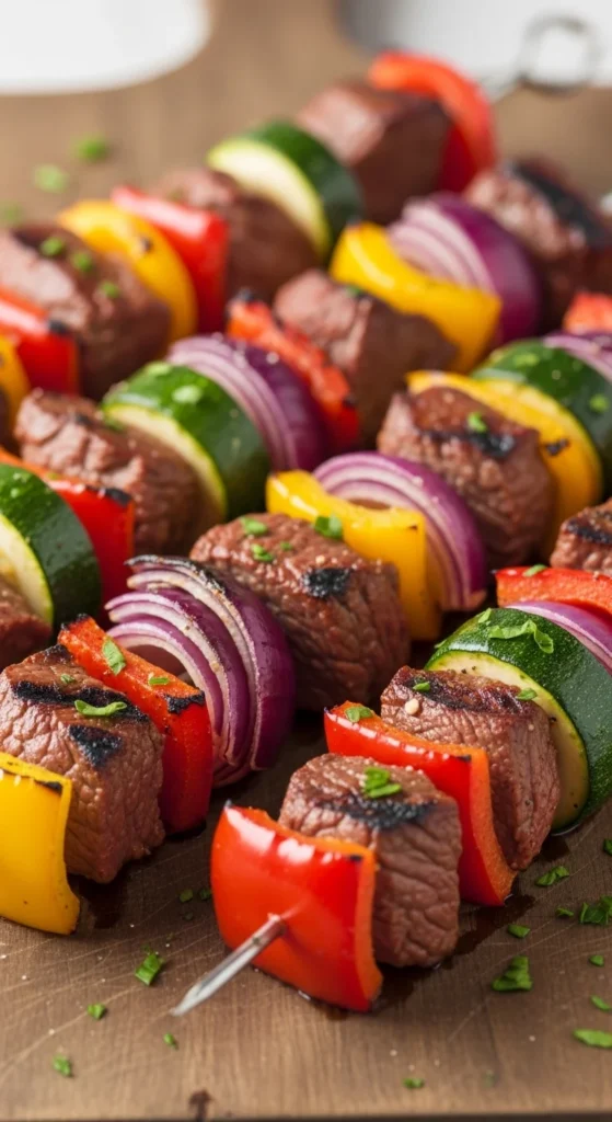 These kebabs combine beef and vegetables into one easy air fryer meal. The meat cooks quickly while the vegetables soften and pick up flavor, making it a balanced dinner without needing separate sides.