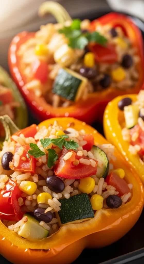 These stuffed peppers are filling and easy to prepare, combining vegetables and grains into one simple dish. The air fryer softens the peppers while keeping a slight texture, making them satisfying without being heavy.
