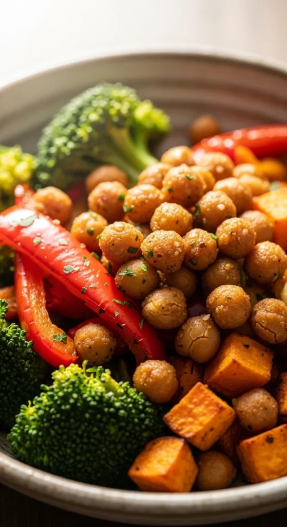This bowl combines crispy chickpeas with vegetables for a simple and filling plant-based meal. It’s quick to make and uses basic ingredients, making it a great option for busy nights.