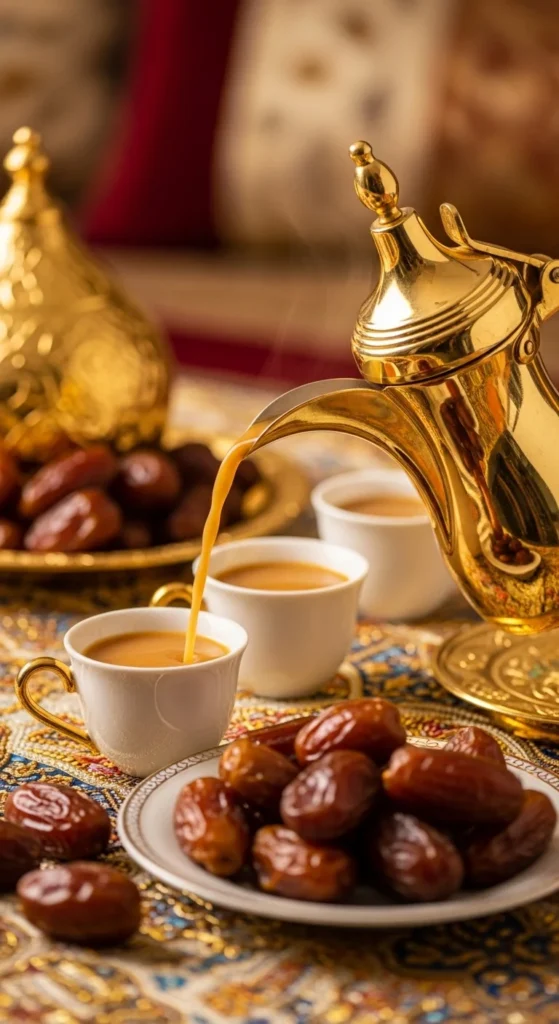 Serve in small cups filled halfway only. Offer dates alongside as tradition encourages sweetness before sipping. Refill guests’ cups slowly as a sign of hospitality.