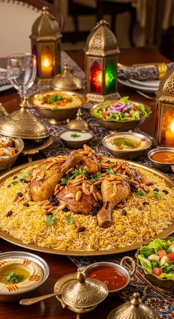 Chicken Kabsa is the kind of dish that instantly makes a table feel complete. The aroma of spices, roasted chicken, and slow cooked rice fills the room before guests even sit down. It is popular across Saudi homes because it feeds many people without complicated steps, yet still feels special enough for celebrations. When served on a large platter, it naturally becomes the center of attention during Eid gatherings.