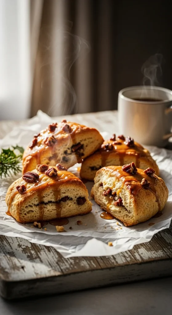 Add a light glaze if you want sweetness. Serve warm on a holiday napkin. Add cranberries around the plate. Dust with powdered sugar. Pair with warm tea. Offer jam on the side.