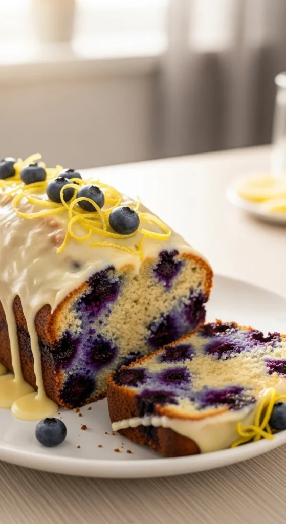 Slice thick pieces. Add lemon slices for decoration. Dust with powdered sugar. Serve on a bright plate. Pair with tea. Add fresh berries on the side.