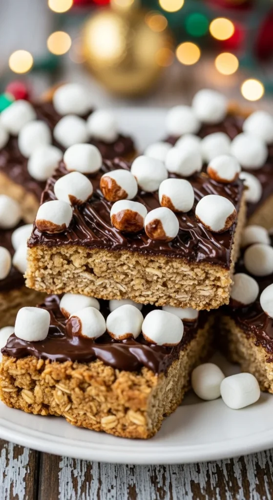 These bars combine oats, chocolate, and marshmallows for a comforting morning treat. They have a chewy texture that feels satisfying. The chocolate melts through the oats, giving a rich flavor. They hold well and can be sliced neatly. Perfect with warm drinks.