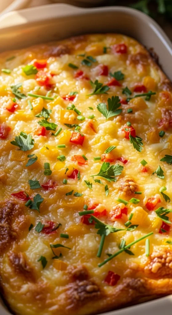 Cut into neat squares and place on a holiday platter. Sprinkle fresh herbs over the top. Serve with toast or roasted potatoes. A spoonful of salsa adds a bright touch. A small fruit bowl on the side makes it balanced. Serve warm for the best texture.