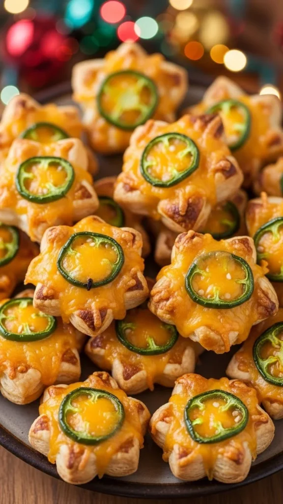 These star-shaped bites are cheesy, fun, and perfect for Christmas gatherings. The jalapeño adds gentle heat, and the pastry becomes crisp and flaky. They look festive on any holiday platter.