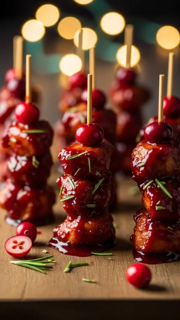 1. Cranberry Glazed Chicken Party Skewers