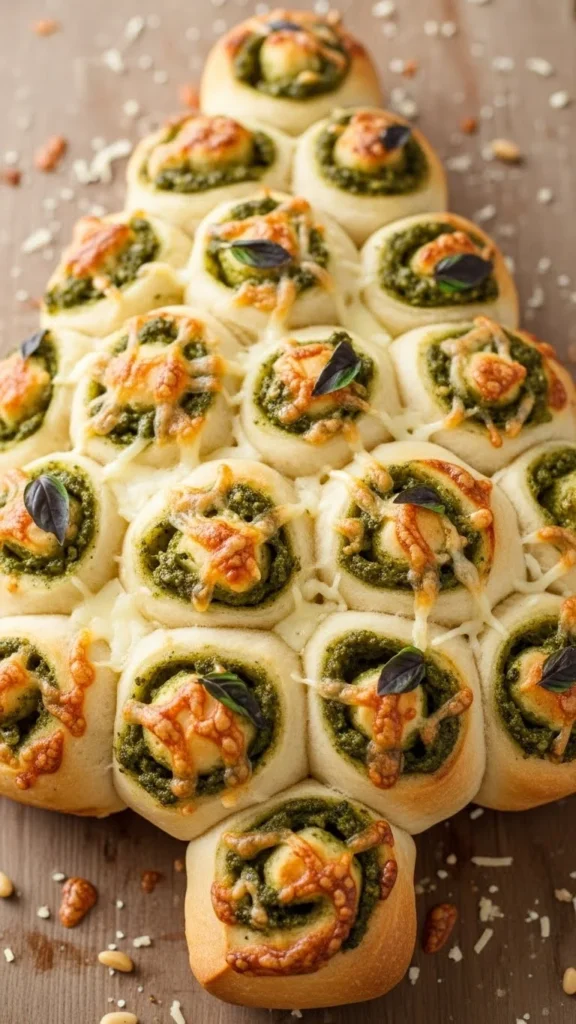 This pull-apart is cheesy, soft, and shaped for the season. The pesto adds bright color and flavor. It pulls apart easily, making it perfect for group snacking. A showstopper on holiday tables.
