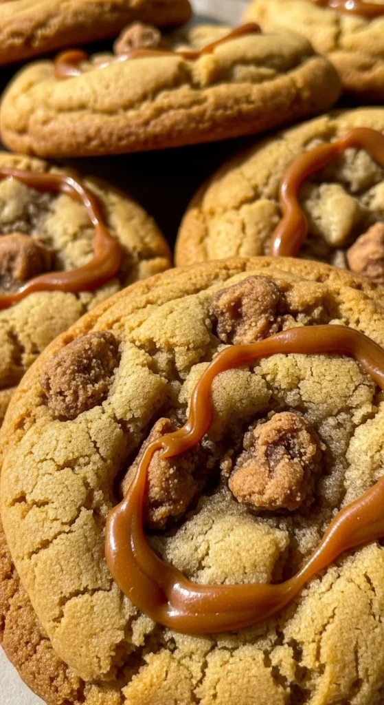 These lean into a deep, caramelized flavor. Browning the butter gives a nutty base, and the toffee melts slightly to create little crunchy pockets throughout.