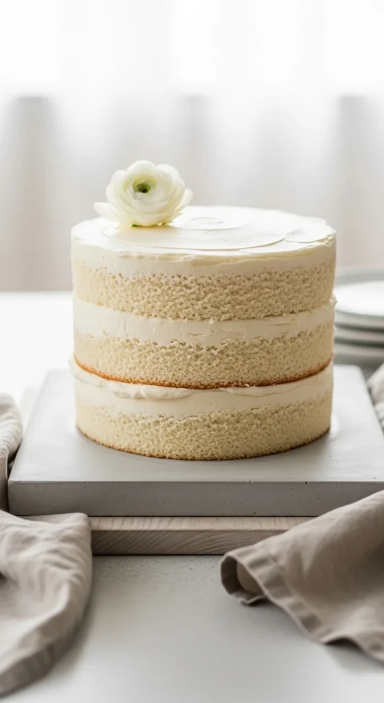 This cake follows the modern minimalist trend, using very light frosting to keep the layers visible. It’s simple to assemble and doesn’t require perfect decoration, which makes it less stressful for beginners. The focus stays on texture and flavor rather than heavy icing, making it a clean and balanced dessert.