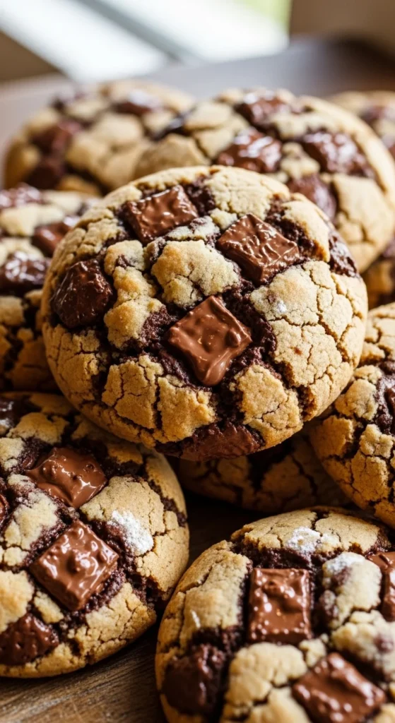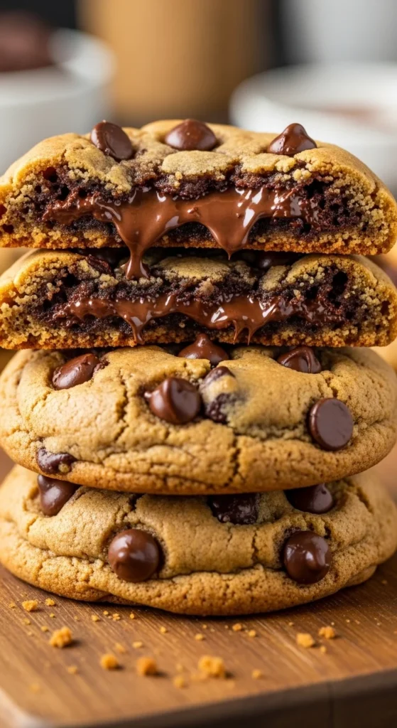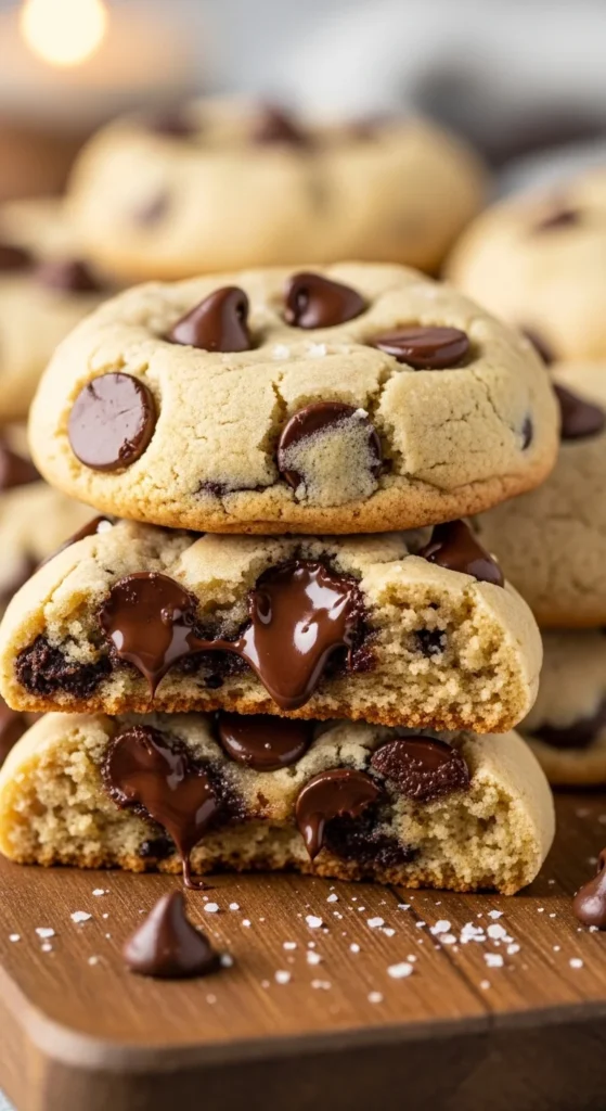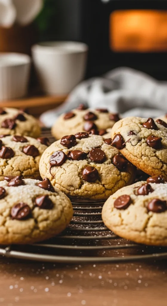 Let them rest for 5 minutes so they firm up but stay gooey inside. Sprinkle a little sea salt, pick one up while still slightly warm, and serve with cold milk or coffee. These are perfect when you want that bakery style chewy cookie experience.