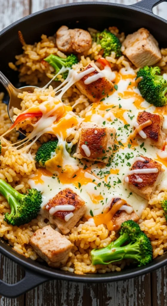 This is comfort food but faster. The rice cooks right in the same pot with the chicken, soaking up all the flavor. You get creamy, herby, and savory in one bite without juggling multiple pans.