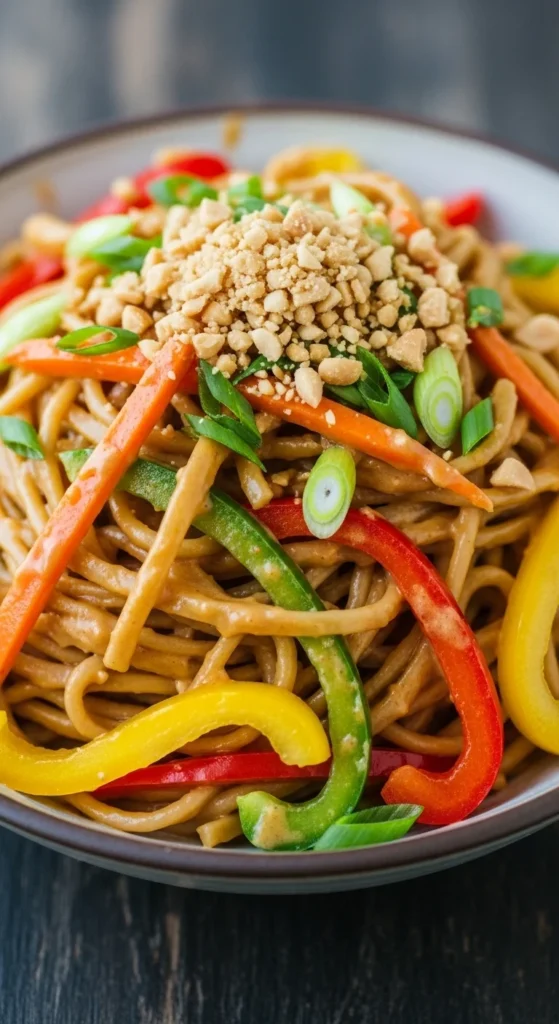 This is one of those quick and easy dinners that tastes like takeout but is faster at home. The peanut sauce is creamy, a little sweet, and coats every noodle. Great for busy weeknights when you still want big flavor.