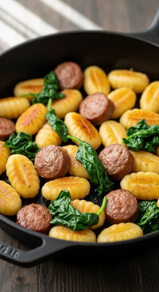 You are going to love this on a busy night because everything cooks in one pan and the gnocchi gets lightly crispy outside and soft inside. The sausage adds a big flavor, so you don’t need complicated sauces. This is one of those easy dinner recipes that saves time but still feels special.
