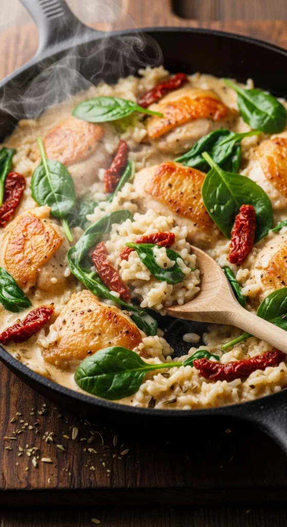 2. One Pot Creamy Tuscan Chicken and Rice