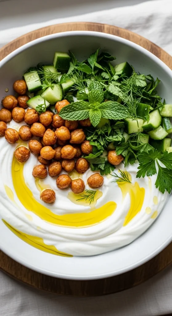 Not every snack needs sugar. This is a high protein snack that follows the savory yogurt bowl trend and keeps hunger away longer than sweet snacks.