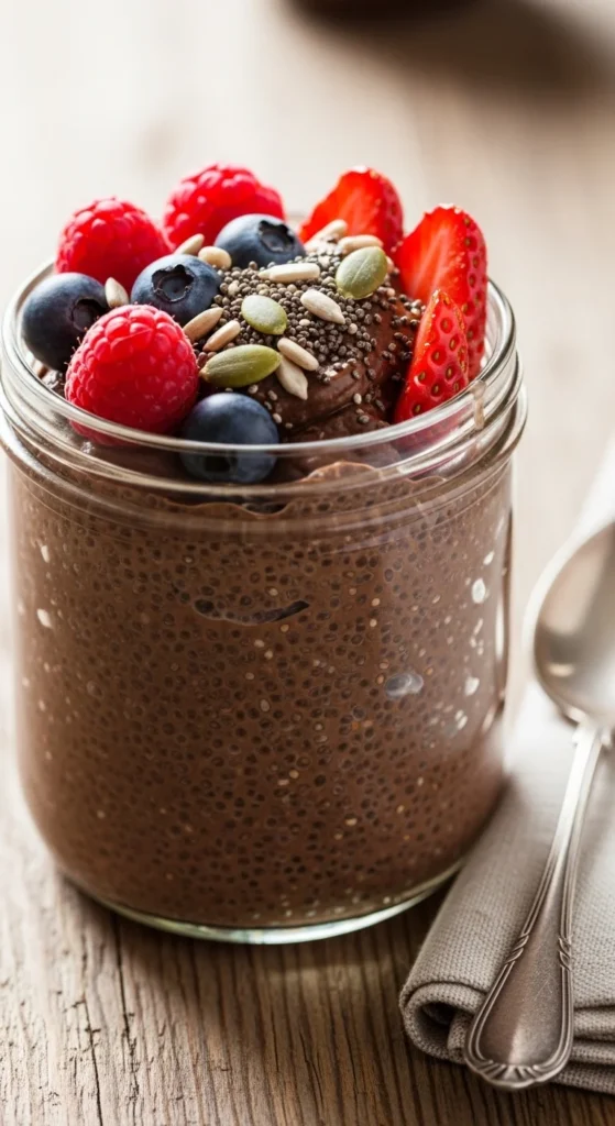 This is for when you want something chocolatey but still in the healthy snacks and desserts zone. It is one of those make ahead, high protein snacks that quietly solves late snack ideas without grabbing junk food. You mix it once and the fridge does the work.