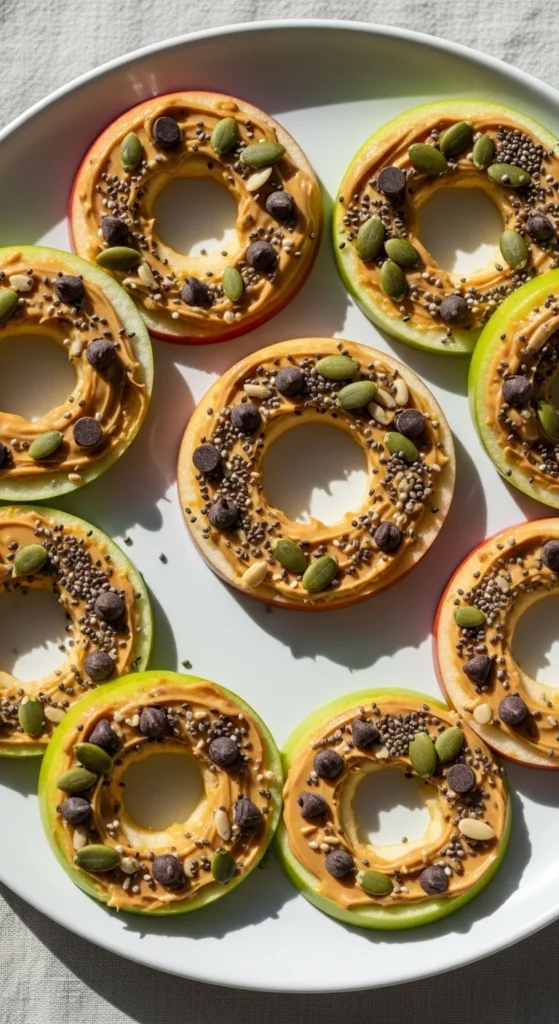 Serve these on a small plate as an after school snack or quick desk snack. If packing for later, brush the apple lightly with lemon juice so it does not brown. This is one of the easiest healthy snacks and desserts when you want something sweet but balanced.