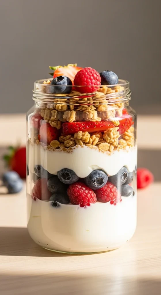 Yogurt parfaits show up in most top snack lists for a reason. They are high in protein, do not cook, and take under 5 minutes. Greek yogurt is especially popular because it can give 7 grams or more protein per serving.