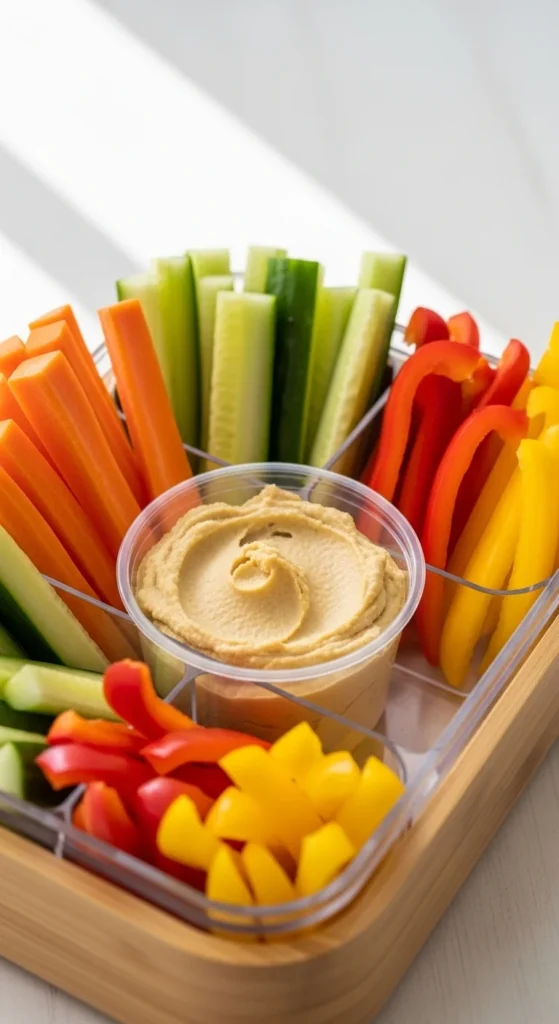 Crunchy veggies and hummus are a classic because they combine fiber and plant protein. This helps with real hunger, not just cravings. It is also a top choice for people trying to snack healthier.