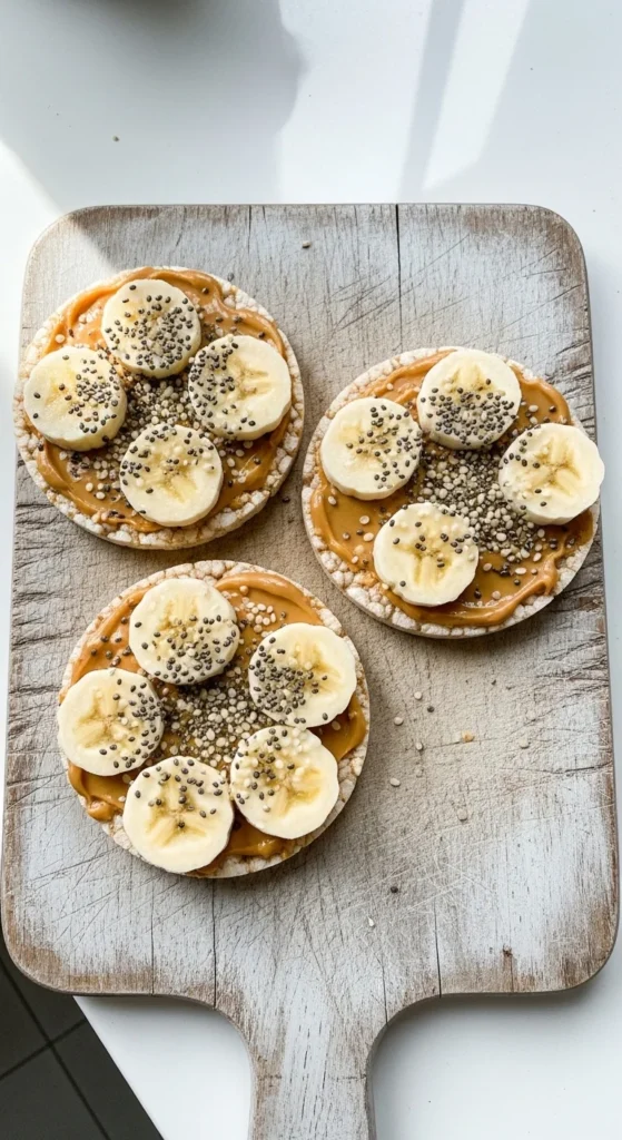Eat right after assembling so the rice cake stays crisp. If packing for school or work, carry bananas separately and add just before eating. This is one of those healthy snack ideas that is easy and quick that actually keeps you full.
