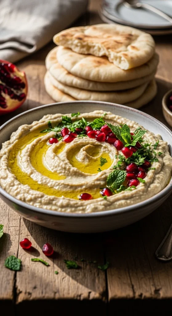 Drizzle olive oil and add herbs or pomegranate seeds. Serve with warm pita. Best enjoyed slightly chilled or room temperature.
