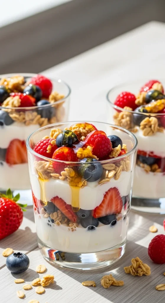 These parfait cups add freshness to the table and balance heavier dishes. They are light, colorful, and refreshing after savory foods. You can assemble them quickly, which helps when hosting. Guests also like individual portions.