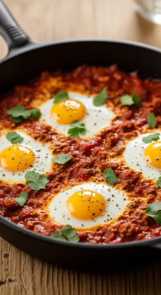 This version is for when you want something hearty. Spiced minced lamb turns shakshuka into a full meal. It feels festive and satisfying, which makes it great for Eid gatherings. The keema base can be cooked a day ahead, saving time in the morning.