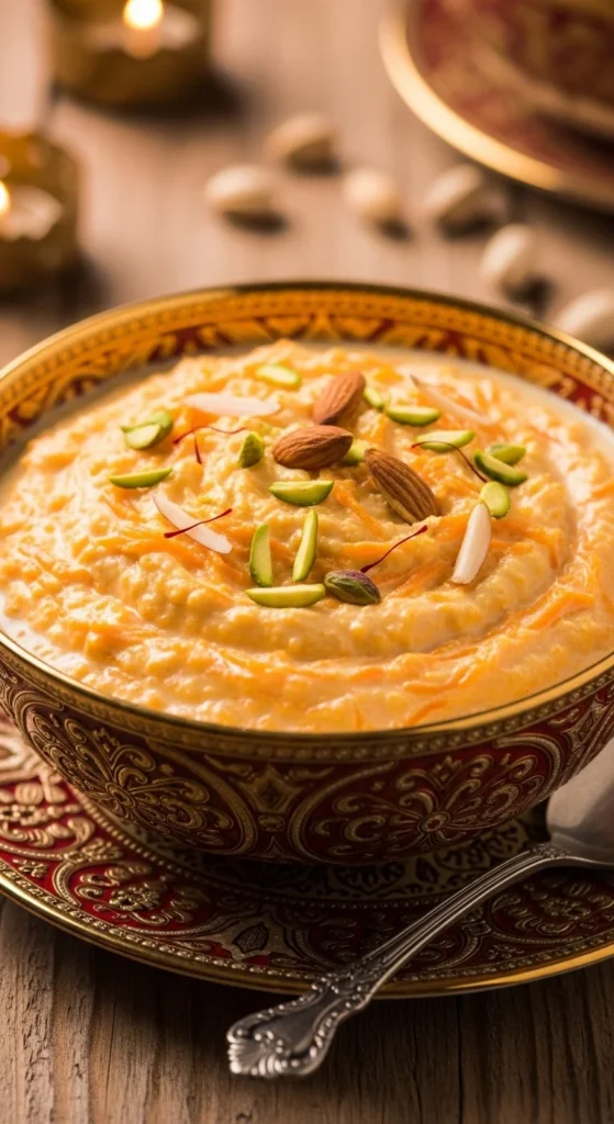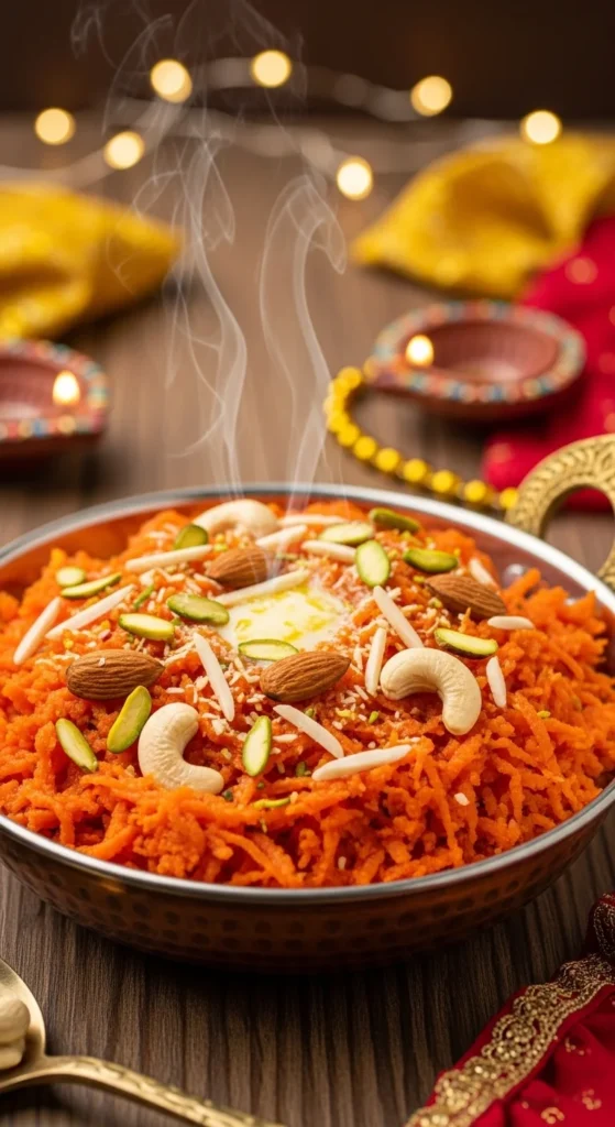 Gajar ka halwa is one of those desserts people associate with celebration and comfort. Slow-cooked carrots, milk, and ghee create a deep flavor and soft texture. The aroma while cooking already makes the kitchen feel festive. It is simple but always appreciated.
