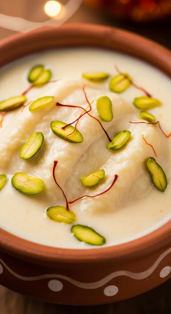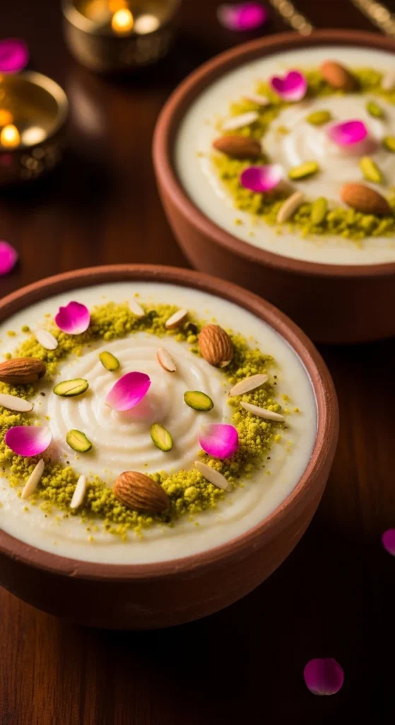 Serve warm or chilled. Garnish with nuts and a light sprinkle of cardamom. Small bowls work best after a big meal.