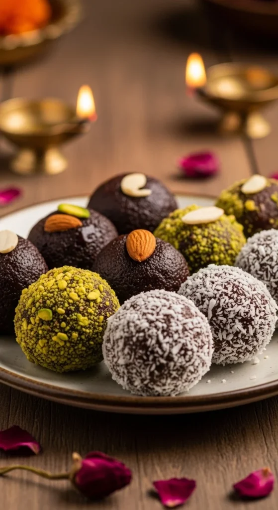Dates and nut laddus are a naturally sweet option with no added sugar. The dates hold everything together while nuts add crunch. They are filling but still feel like a treat. This is a good choice for guests who prefer less processed sugar.