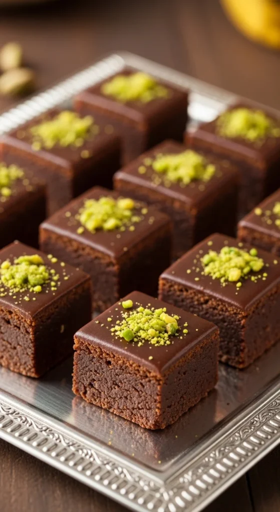 Serve warm for the best texture. Sprinkle pistachios on top. Cut into small slices for easy serving.