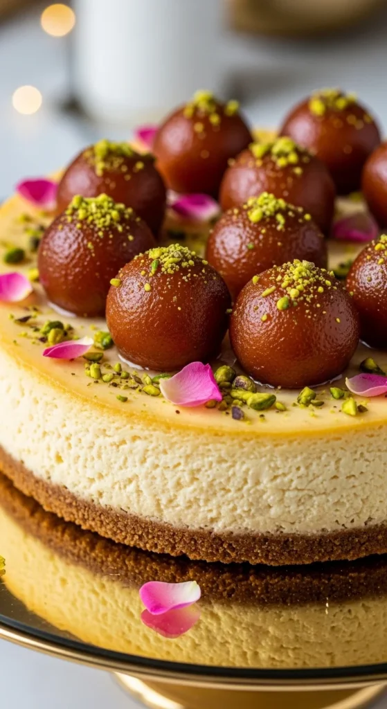 Gulab jamun cheesecake brings together a familiar Eid sweet and a popular modern dessert. The creamy cheesecake layer balances the syrupy gulab jamuns on top. It looks impressive on a dessert table and usually becomes a conversation piece. This is a nice pick when you want something traditional with a twist.