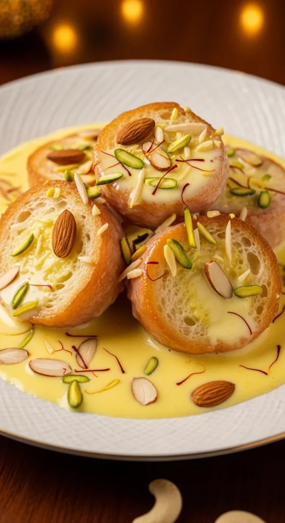 Shahi tukra feels like a royal dessert and often shows up when you want something truly festive. Fried bread, creamy rabri, and nuts come together in a rich, soft, and slightly crisp bite. It looks impressive on the table but uses simple ingredients you probably already have. It is a great choice when guests are coming over and you want a traditional Mughlai sweet.