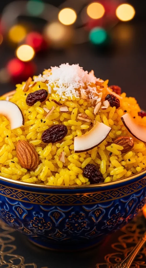 Zarda sweet rice brings color to the dessert table. The fragrant rice, sugar, and dry fruits create a sweet dish that feels celebratory. Many families serve it at gatherings because it is easy to make in large portions. The bright color instantly signals a festive meal.