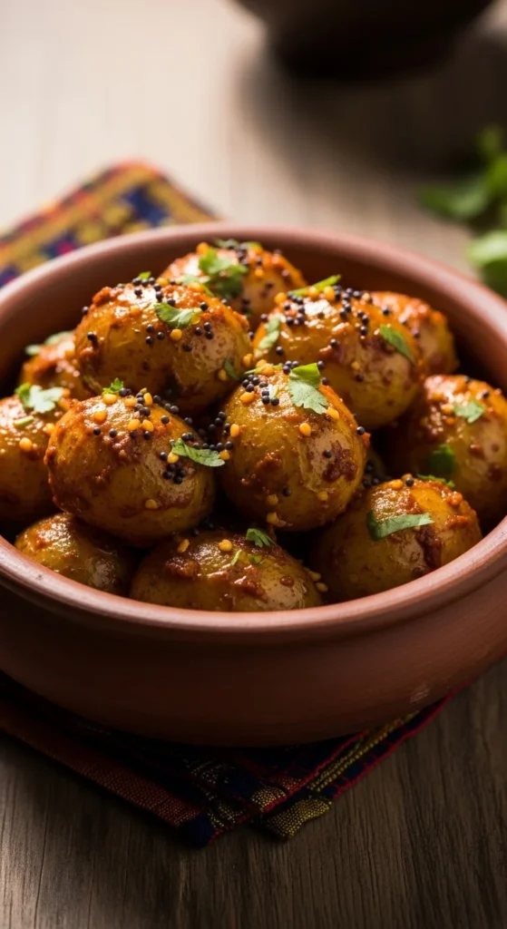 Garnish with cilantro. Serve with yogurt or raita. Lemon wedges brighten the flavors.