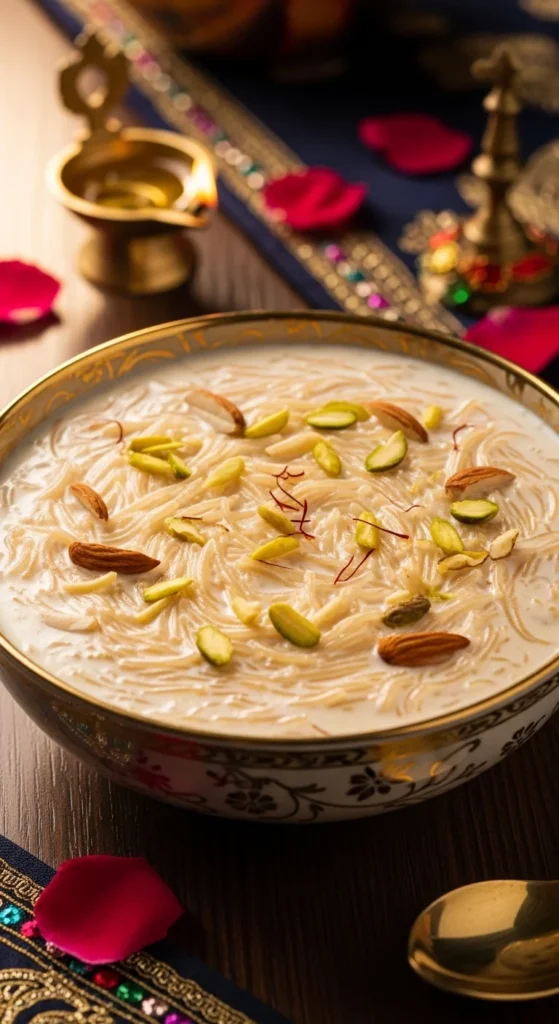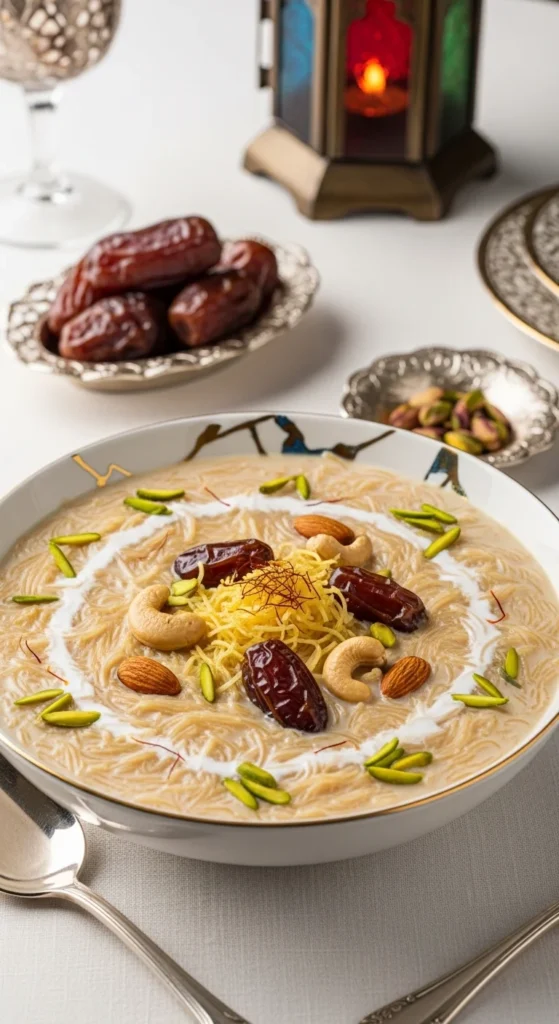 Sheer khurma is closely tied to Eid celebrations. The creamy milk, vermicelli, and dates create a comforting dessert. It feels festive and welcoming for guests. It can be made earlier and reheated gently.