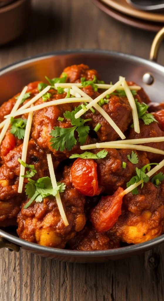 Garnish with cilantro and ginger. Serve hot with naan or roti. Lemon wedges on the side add brightness.