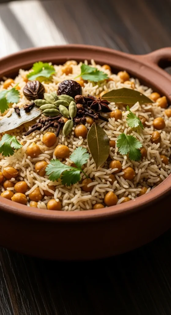 Chana pulao is a great choice when you want something hearty but not too heavy. The chickpeas add protein and a soft bite, while the rice carries gentle spice. It fits well into an Eid lunch spread where guests like a mix of meat and vegetarian options. This dish also scales easily for large families.