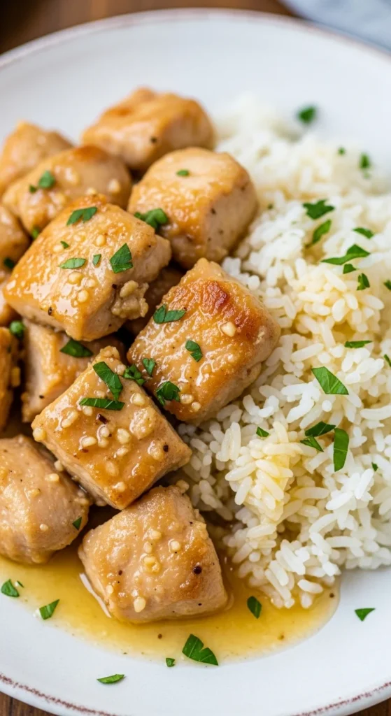 This is a simple protein dinner that feels comforting. Garlic butter adds a big flavor without strong spices, which works well for kids and adults.