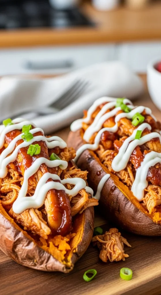 21. BBQ Pulled Chicken Stuffed Sweet Potatoes