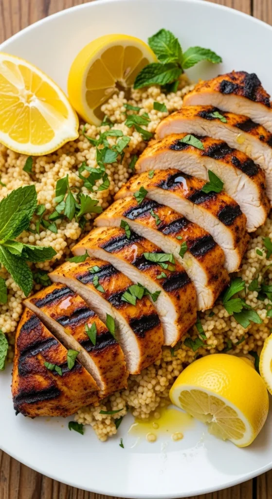 - Slice chicken and serve over couscous.