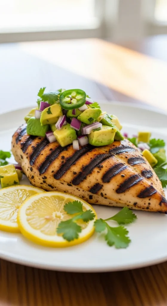 1. Lemon Herb Grilled Chicken with Avocado Salsa