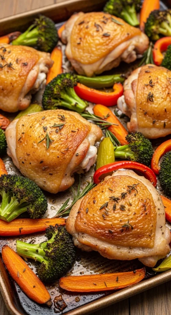 2. Garlic Yogurt Marinated Chicken Thighs with Roasted Veggies