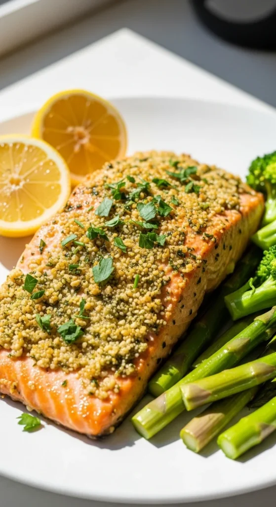 You know those nights when you want something healthy but still satisfying? This salmon is perfect for that. The Dijon keeps it juicy and the herbs make it taste fresh, not “diet food.” If you think salmon at home is boring, this will change your mind.