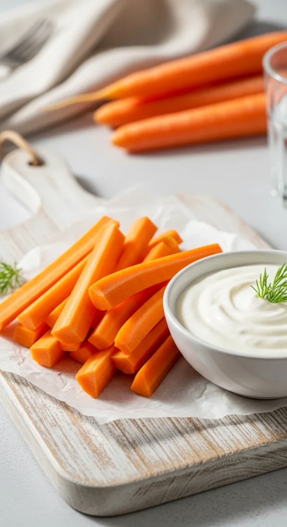 This keeps things simple but balanced. Carrots give natural sweetness and crunch, and the yogurt dip adds protein without making it heavy.