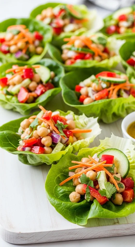 These feel like a light meal rather than a snack. The chickpeas make it filling, while the lettuce keeps everything fresh and low-cal.