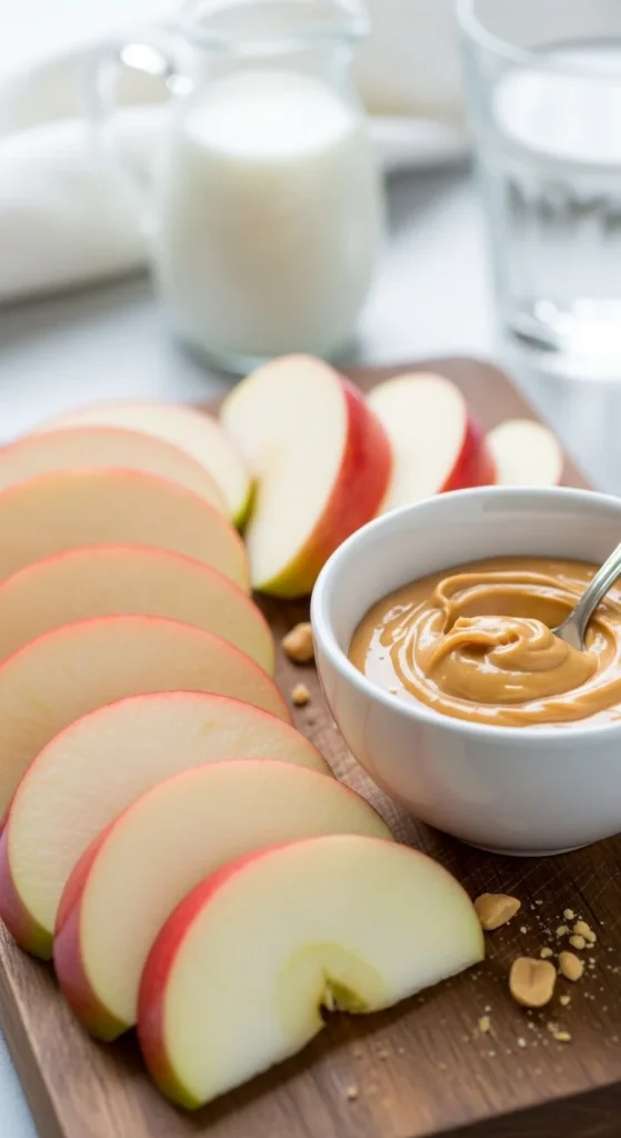 This one works because it keeps you full for longer. The apple gives fiber and crunch, while the peanut butter adds healthy fats and protein.