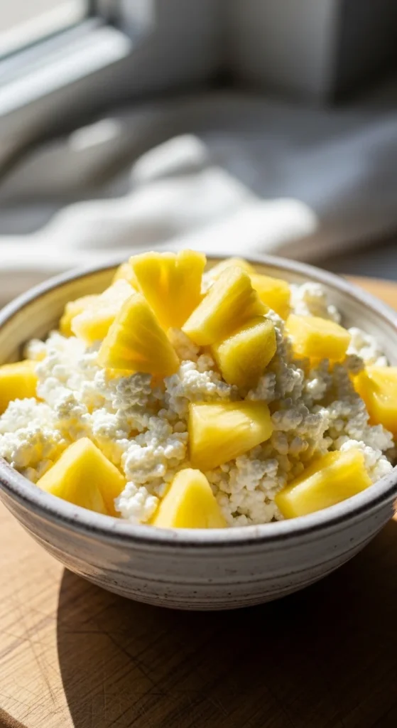 This is light but surprisingly filling. Cottage cheese gives a strong protein boost, and pineapple adds natural sweetness without needing extra sugar.