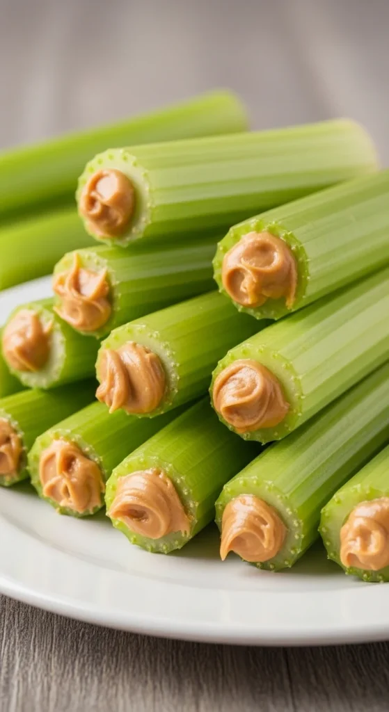 Keep the peanut butter light instead of overfilling. That way you still get the crunch from the celery without turning it into a heavy snack.